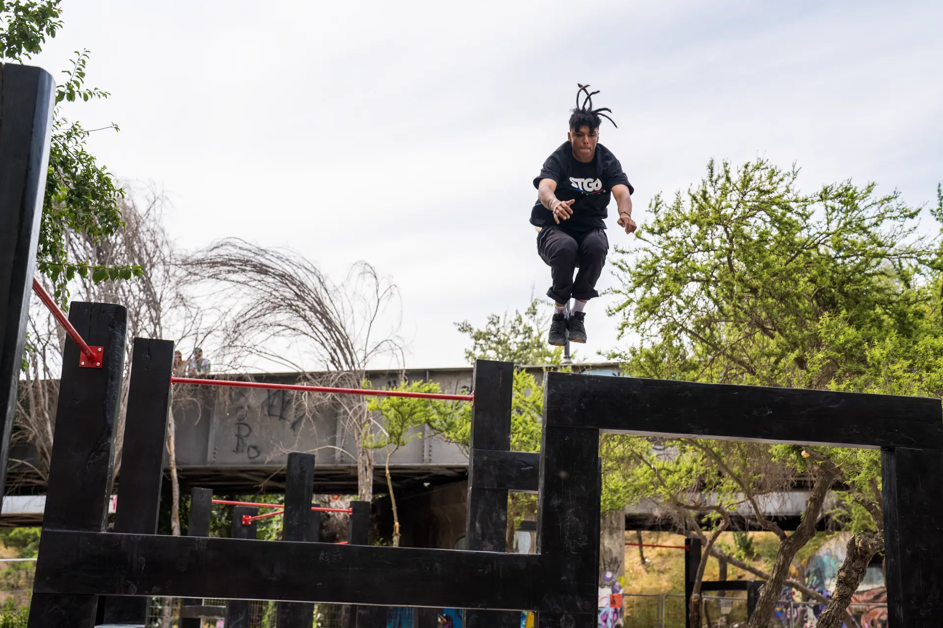 Esta agrupación asesoró activamente a deportelibre en todo el desarrollo técnico del diseño de parkour park para poder realizar una infraestructura de calidad y que responda a todas las condiciones necesarias para practicar de manera adecuada este deporte. el parkour park se construyó en madera nativa de roble en su totalidad sobre un piso de palmetas de caucho para tener una superficie de caída adecuada y todo este proyecto se inserta en un bosque nativo de espinos.
